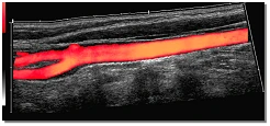 Der sensitive Spektraldoppler liefert eindeutige Ergebnisse. Im Beispiel: Funktionsdiagnostik der Vena poplitea (Kniekehlenvene)