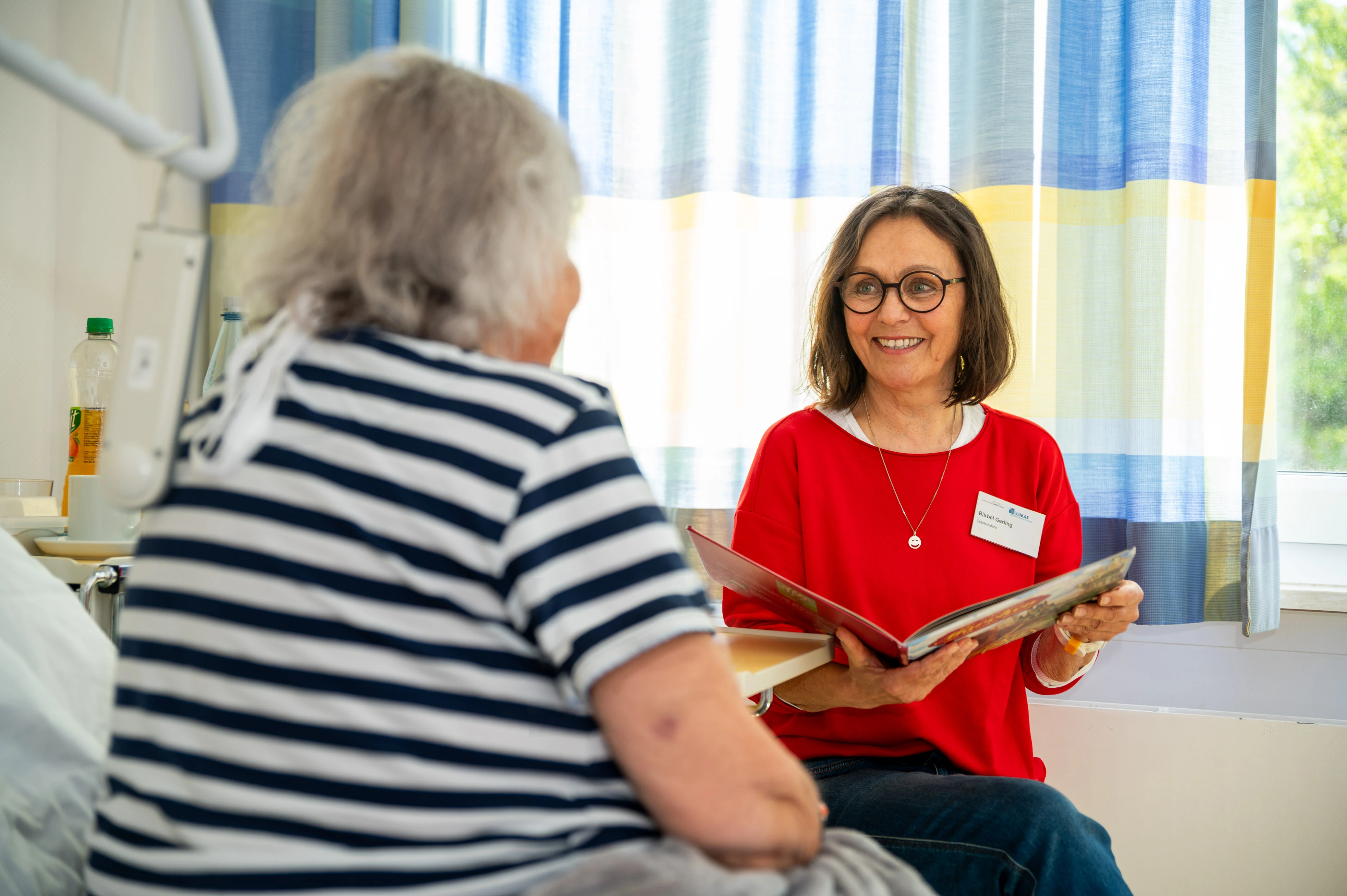 Eine dieser engagierten Begleiterinnen ist Bärbel Gerling. Seit drei Jahren engagiert sie sich als Klinikbegleiterin im Lukas-Krankenhaus Bünde. Zweimal wöchentlich besucht sie die Stationen, um Zeit mit Patienten zu verbringen, die an Demenz erkrankt sind. „Manchmal genügt ein Blick, um zu erkennen, was die Patienten bewegt“, erzählt sie. Gespräche über alltägliche Themen wie Kochen, Reisen oder Haustiere eröffnen oft den Zugang zu ihrer Erlebniswelt. Jede Begegnung ist individuell: Mal liest sie vor, mal spielt sie ein Brettspiel wie „Mensch ärgere dich nicht“, hört gemeinsam Musik oder malt mit den Patienten. Doch manchmal genügt es auch, einfach nur da zu sein und zuzuhören. Besonders berührend findet sie die Einblicke in das Leben der Patienten: „Man schaut in das gelebte Leben eines Menschen. Es ist faszinierend, was man erfährt, wenn die Patienten Vertrauen fassen.“ Diese Momente seien nicht nur für die Patienten wertvoll, sondern auch für sie selbst bereichernd.