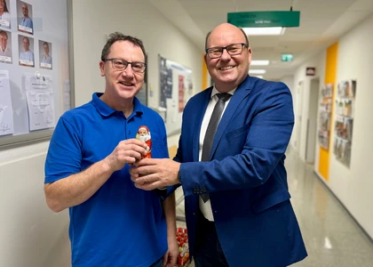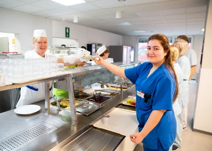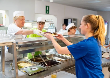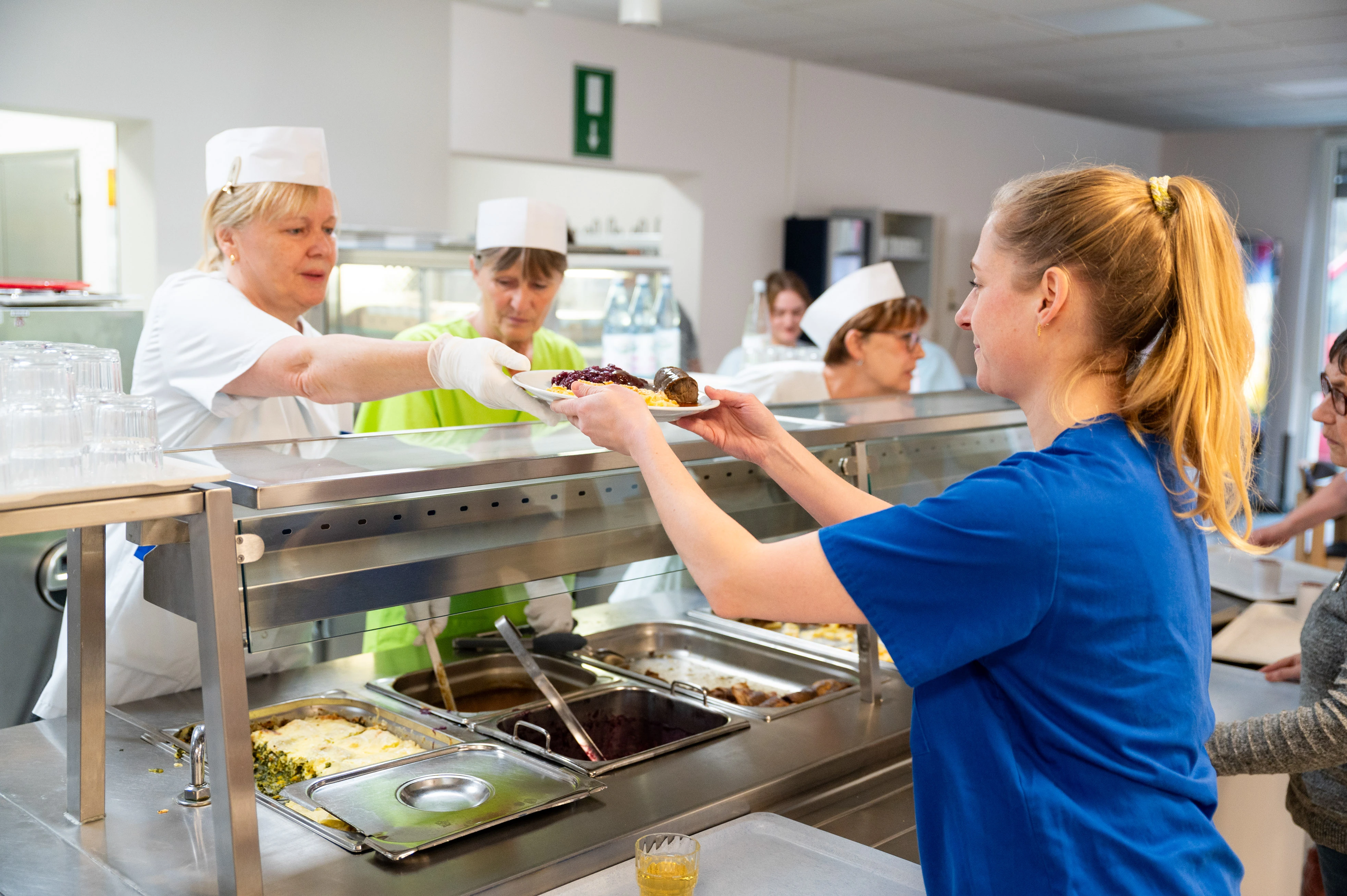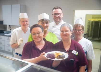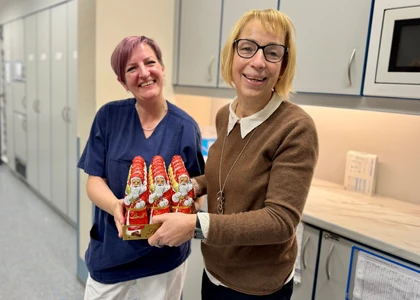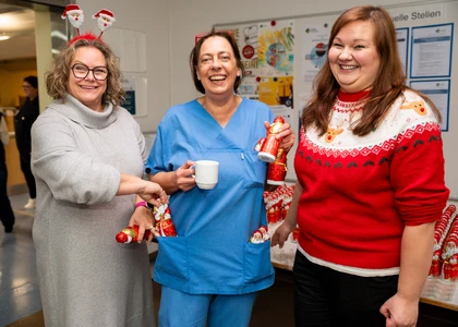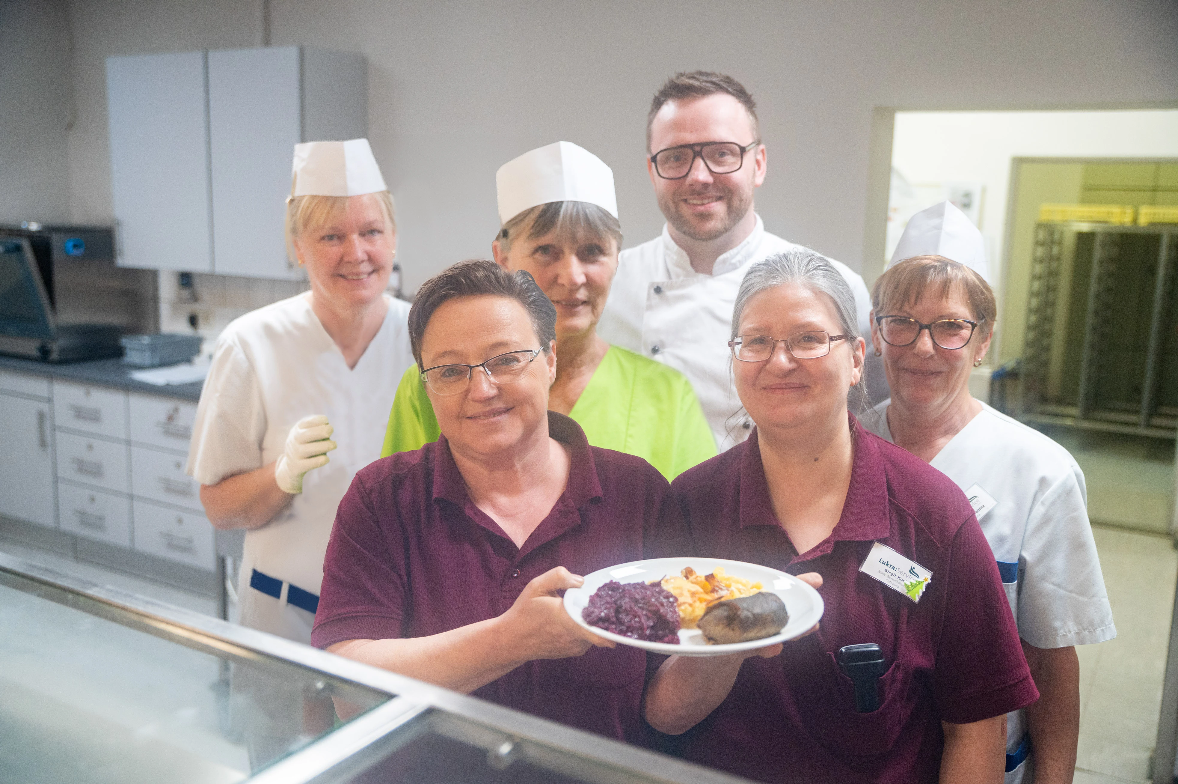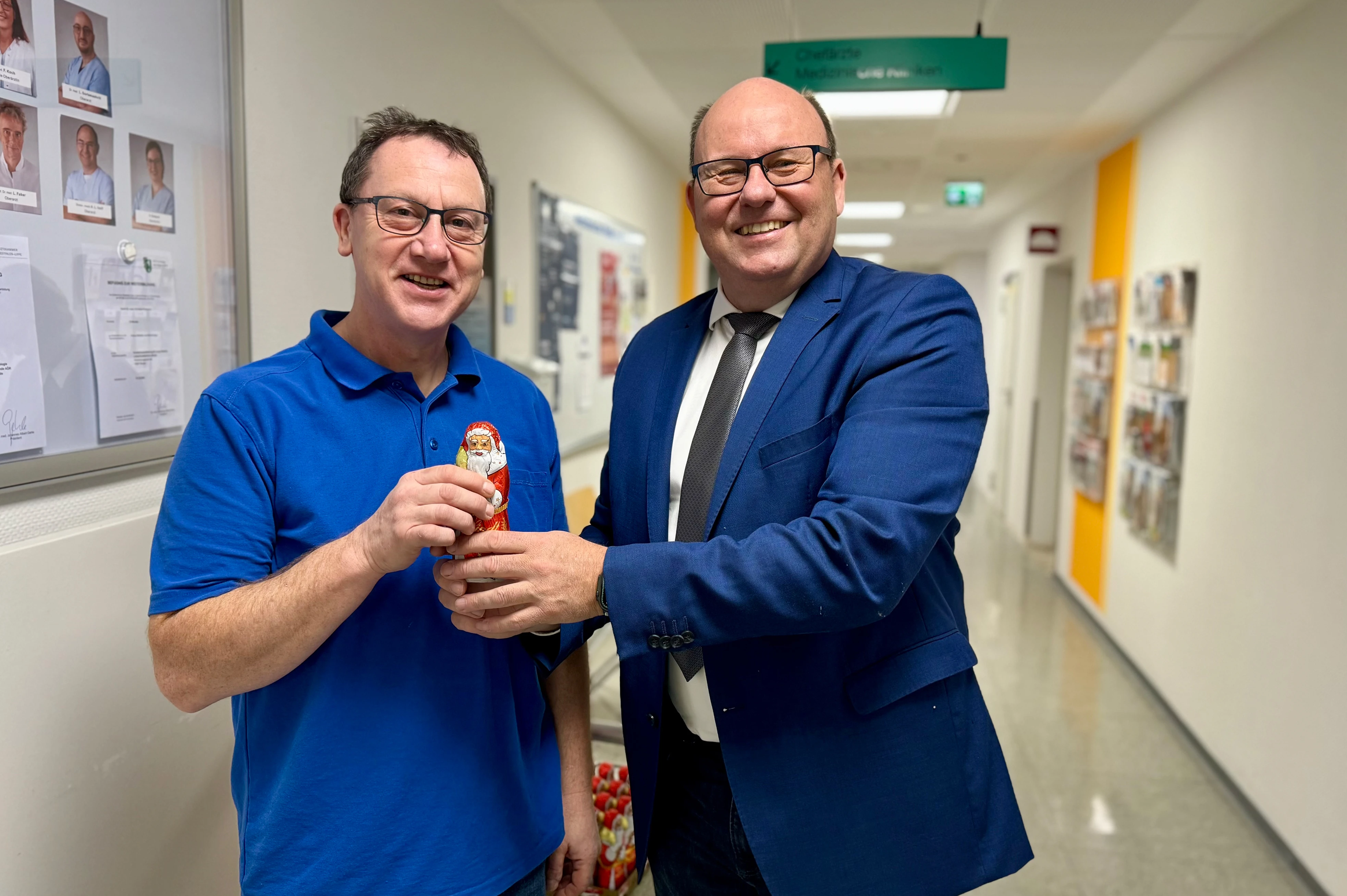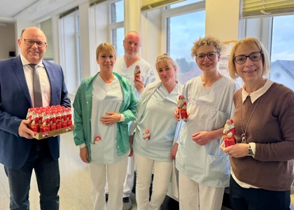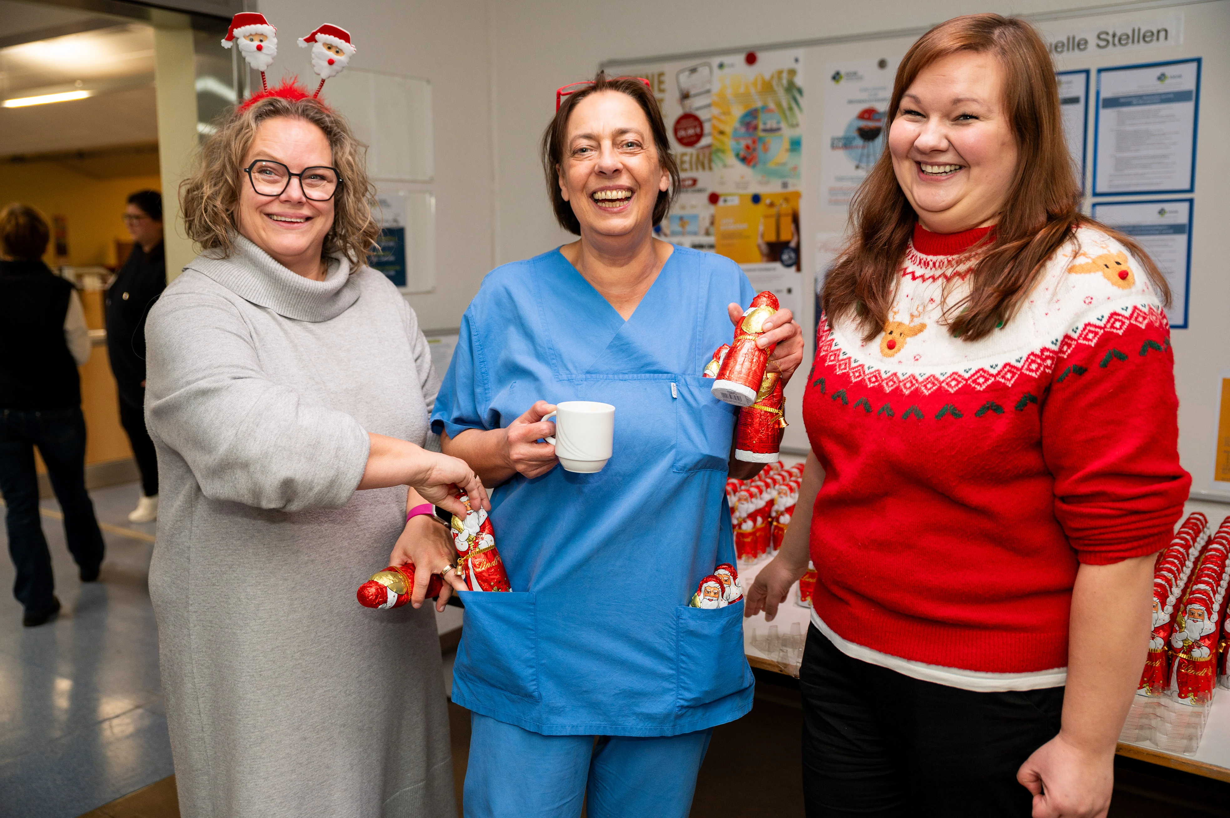 Im Lukas-Krankenhaus in Bünde gab es gleich zwei weitere schöne Überraschungen für unsere Mitarbeitenden. Zunächst verteilte die Unternehmensleitung Schoko-Weihnachtsmänner und bereitete vielen damit eine Freude. Außerdem wurde in der Cafeteria das traditionelle Weihnachtsmenü für unsere Mitarbeitenden zubereitet.