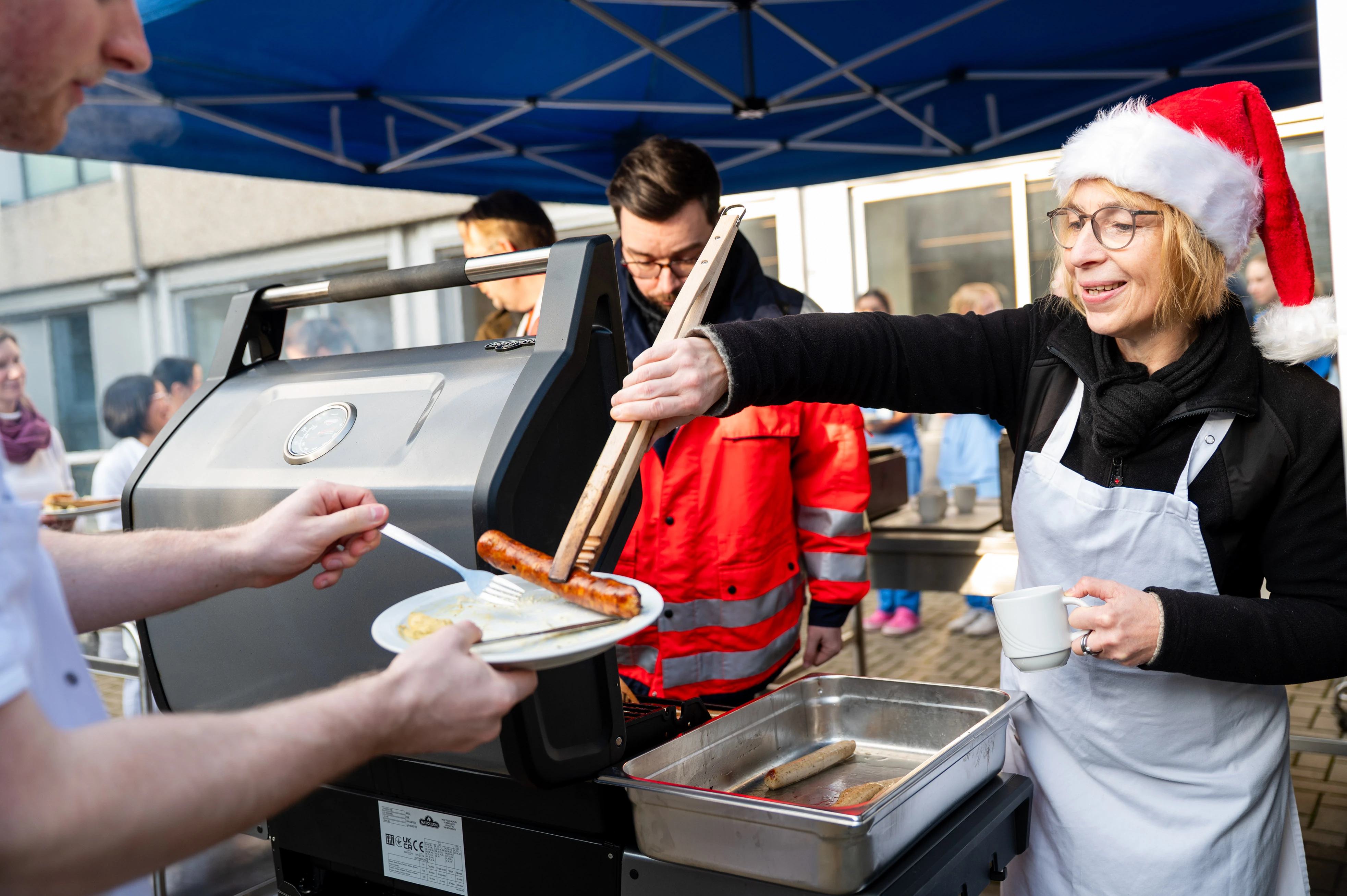 Wie jedes Jahr hat die Unternehmensleitung selbst gegrillt und sich damit bei den Mitarbeitenden für ihren Einsatz und ihre Unterstützung im vergangenen Jahr bedankt. Auch die roten Schokoladen-Weihnachtsmänner waren wieder mit dabei und sorgten beim Verschenken für ein Lächeln.