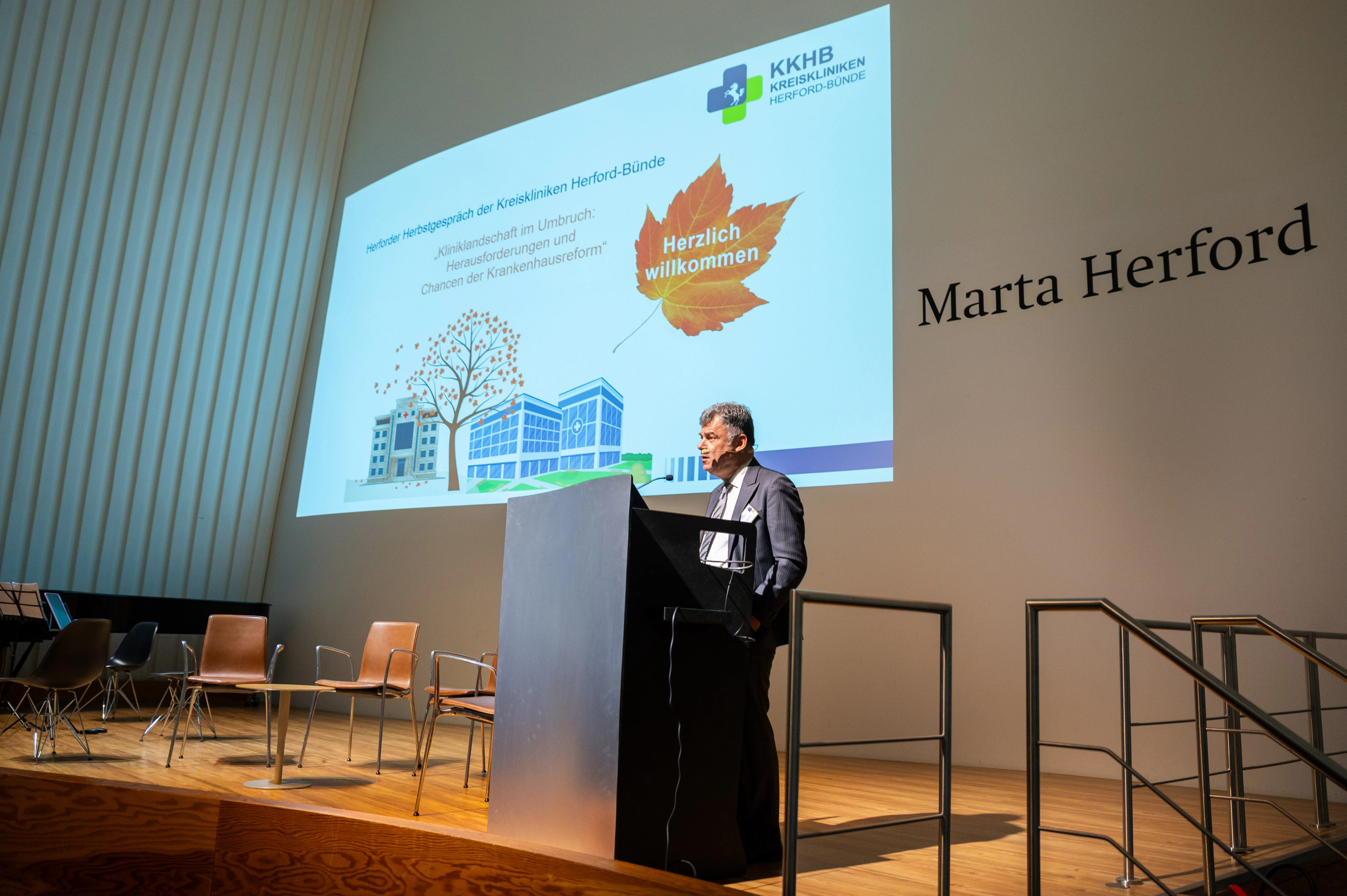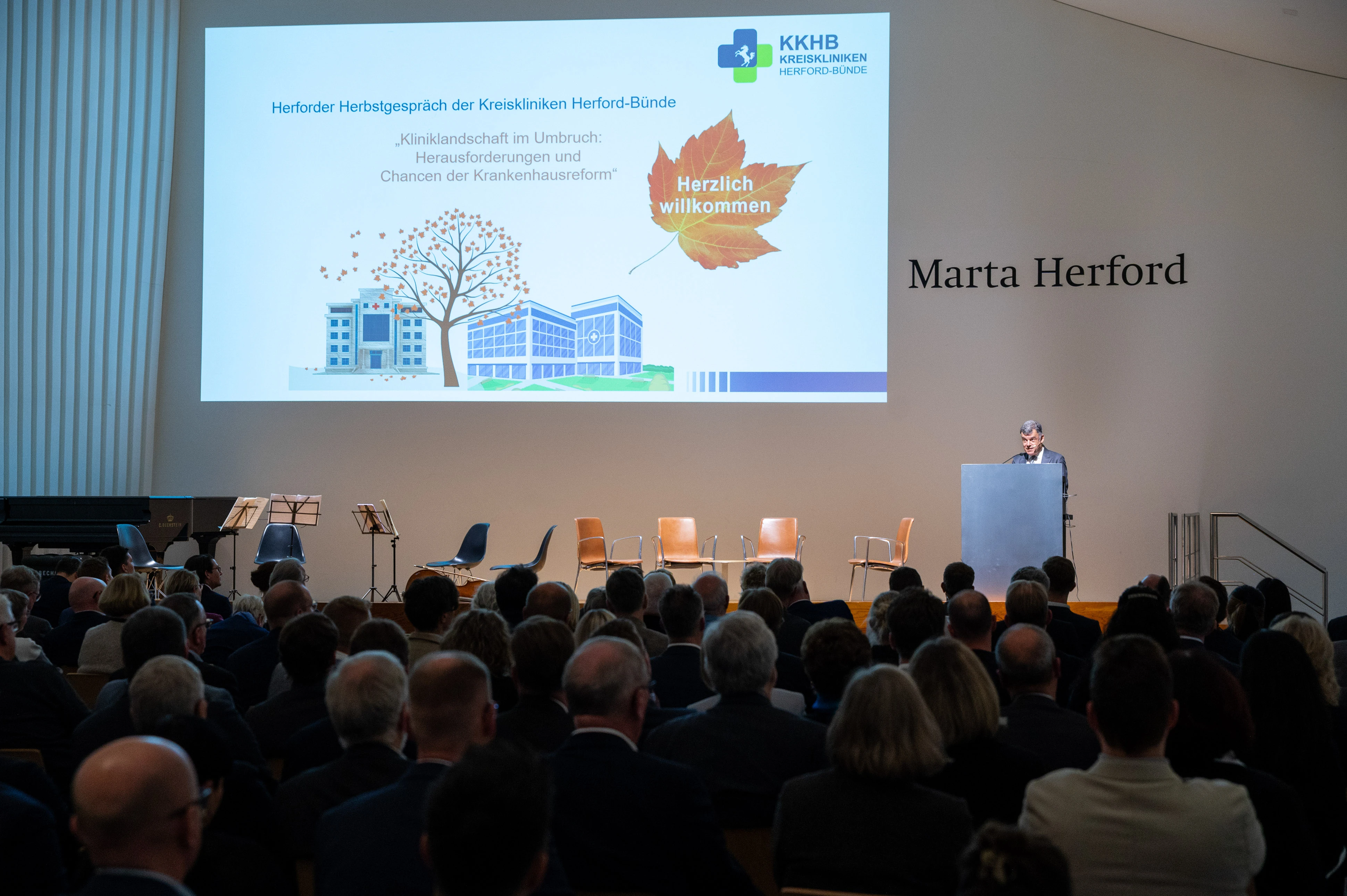 Im inspirierenden Ambiente des Marta Forums Herford diskutierten Expertinnen und Experten im Rahmen des Herforder Herbstgesprächs der Kreiskliniken Herford-Bünde über die Zukunft der stationären Versorgung in Deutschland.