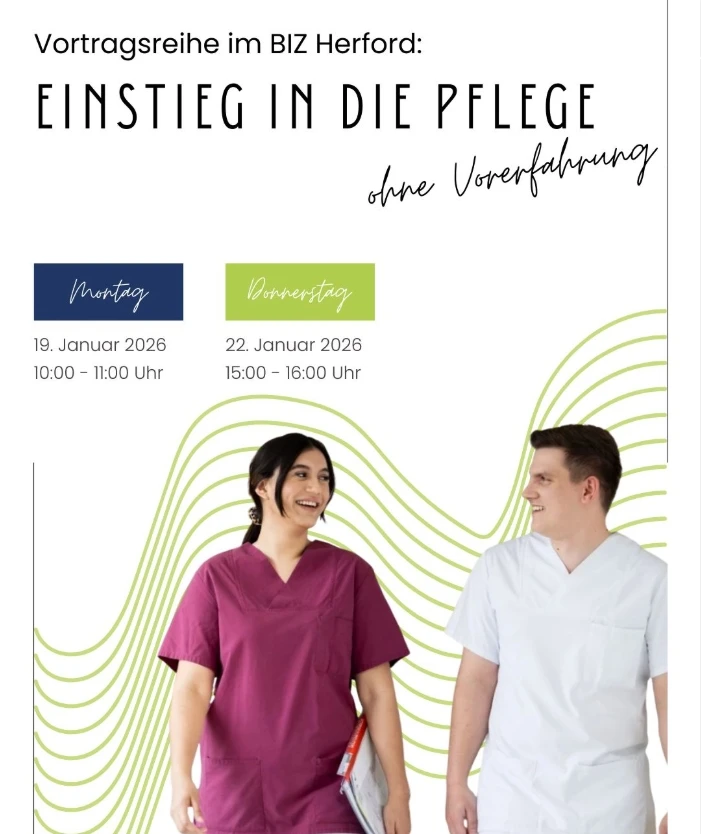 Vorträge im BIZ Herford: Einstieg in die Pflege – auch ohne Vorerfahrung